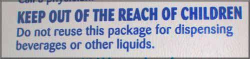 This one came from my Spray and Wash. I know that the warning is there because someone actually sprayed the stuff on someone who was still wearing the stained piece of clothing. Who does that? [I had to add the “treat” since my camera’s flash ate it.]