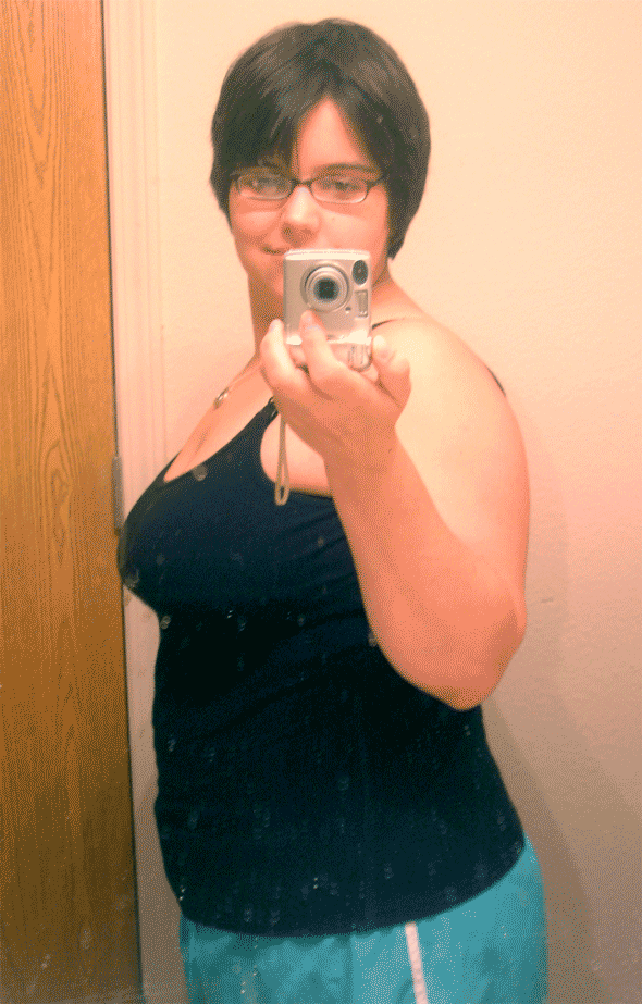 I through this one in for posterity’s sake. Also cause I look HAWT before a shower and when I’m wearing exercise shorts [without the exercise] and a GlamourMom tank.